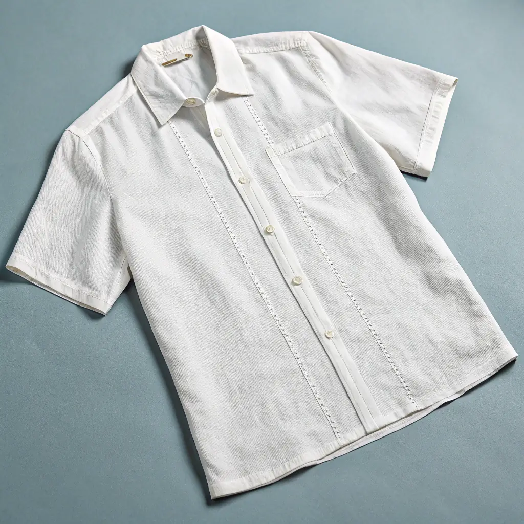 This lightweight button-down shirt is made from a breathable linen-cotton blend, ideal for warm weather. Its relaxed fit and natural fibers provide both comfort and style. The shirt features a classic collar, long sleeves, and subtle stitching details. It’s perfect for casual or semi-formal occasions, offering effortless sophistication.